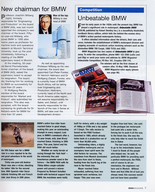 Article from and courtesy of BMW Magazine - January 1999